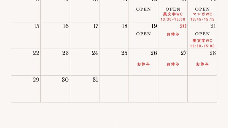 13日(金)・21日(土)tomo先生の手ぶらで気軽にオトナの美文字レッスン