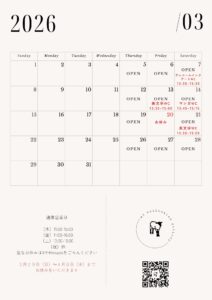 3月の営業日のお知らせ