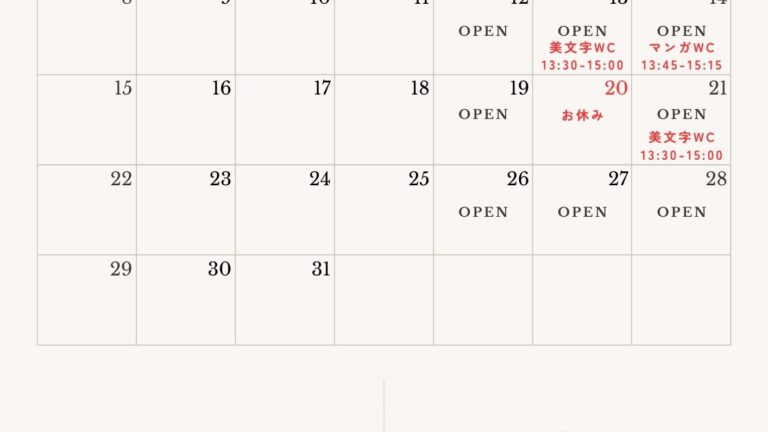 13日(金)・21日(土)tomo先生の手ぶらで気軽にオトナの美文字レッスン